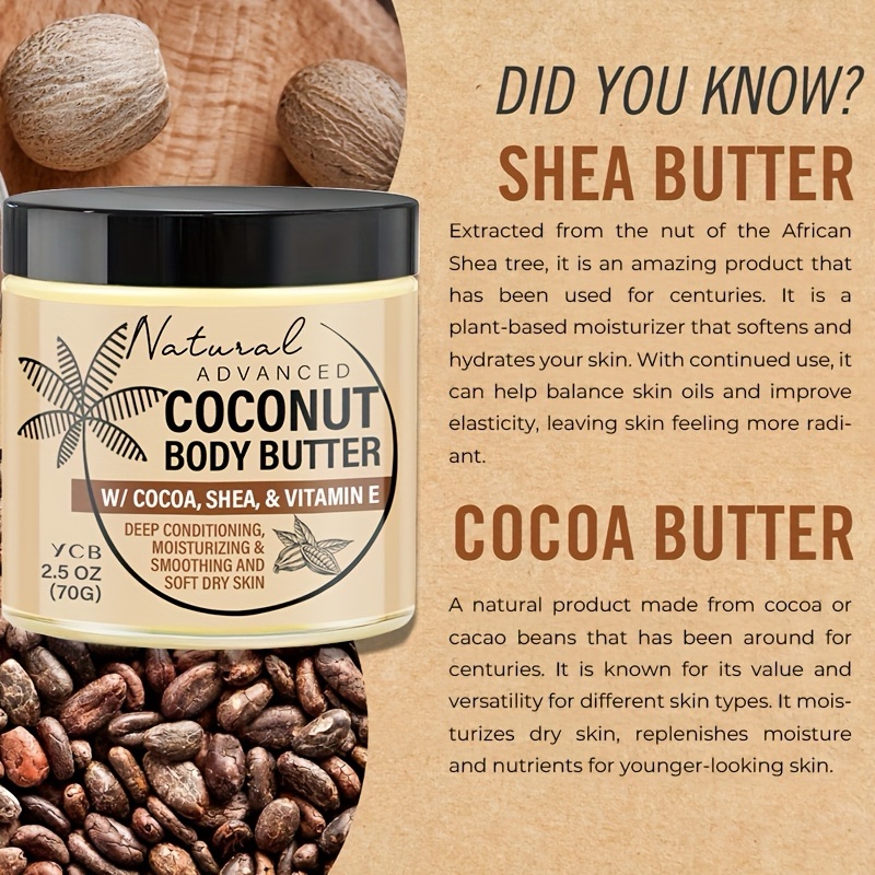 The Coconut Cocoa Body Butter melts into dry skin instantly, leaving it soft, smooth, and deeply nourished — without that heavy, greasy feel. It’s rich, comforting, and made for days when your skin just needs extra care and patience.