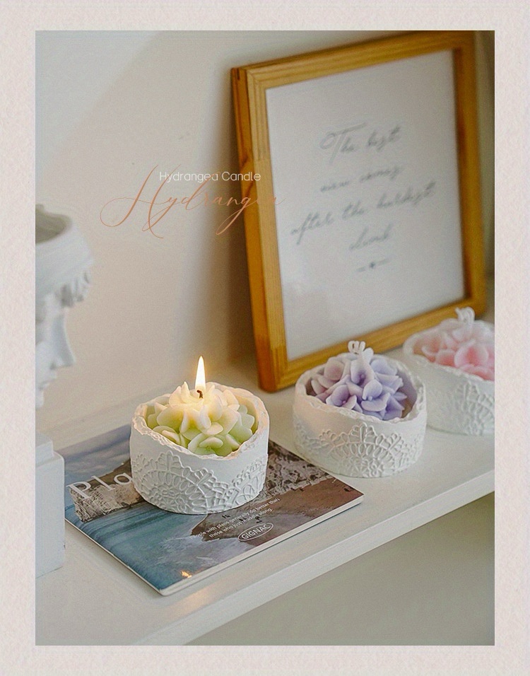 The Hydrangea Bloom Candle is a beautifully designed candle set inside a delicate hydrangea-inspired cup, made to look as lovely on a shelf as it feels when lit. The gentle fragrance adds warmth without overwhelming the room, making it perfect for birthdays, Women’s Day, celebrations, or intimate gatherings.