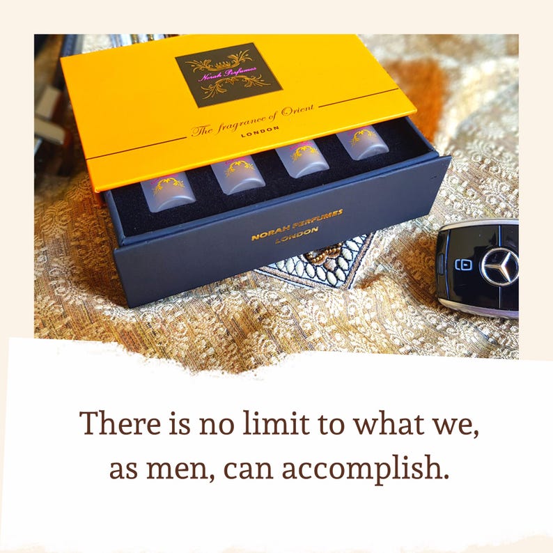 This gift set includes 4 premium Arabian perfume oils (3ml each) made in Madinah using traditional methods. The scents are soft, rich, and long-lasting, with notes of flowers, oud, and musk.