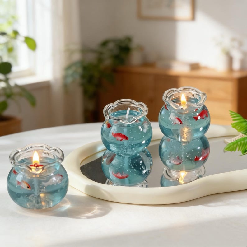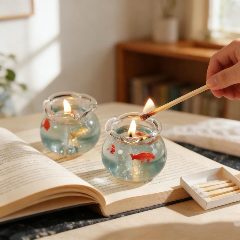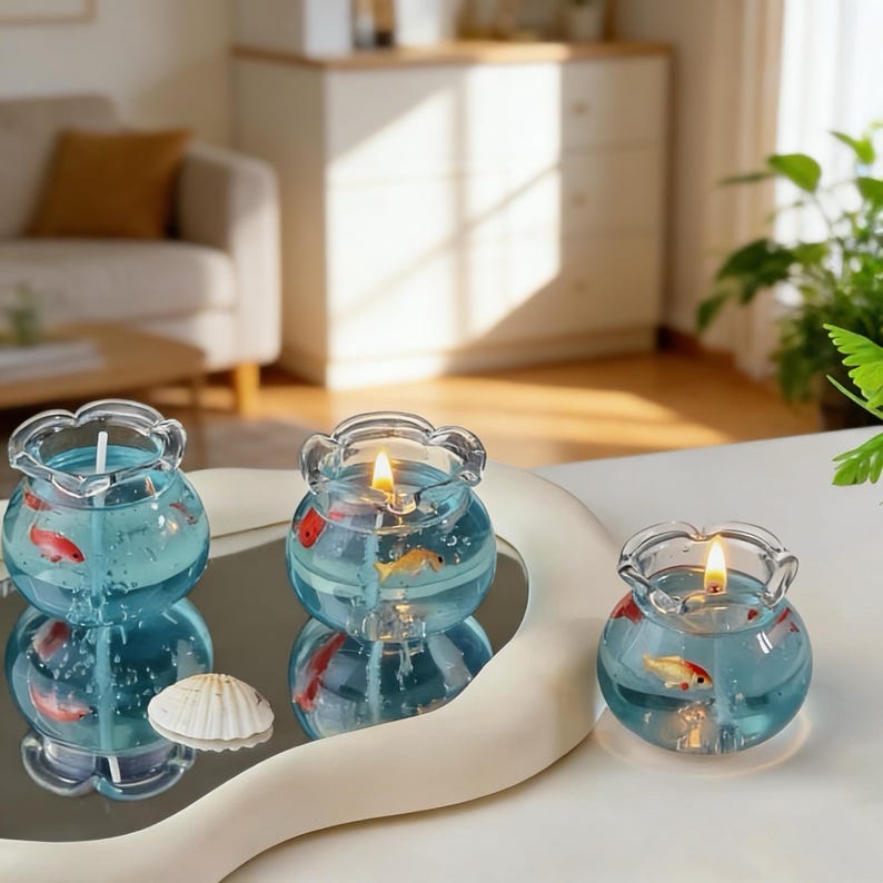 The Mini Aquarium Glow Candle looks like a dreamy little fishbowl, with crystal-clear blue “water,” delicate floating fish, and a soft flame that instantly warms your space. Light it on your desk or nightstand and watch your mood slow down. It’s cozy, soothing, and quietly magical.