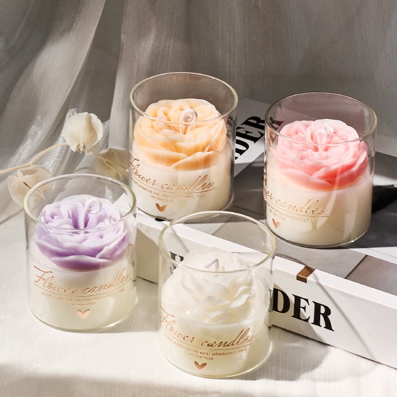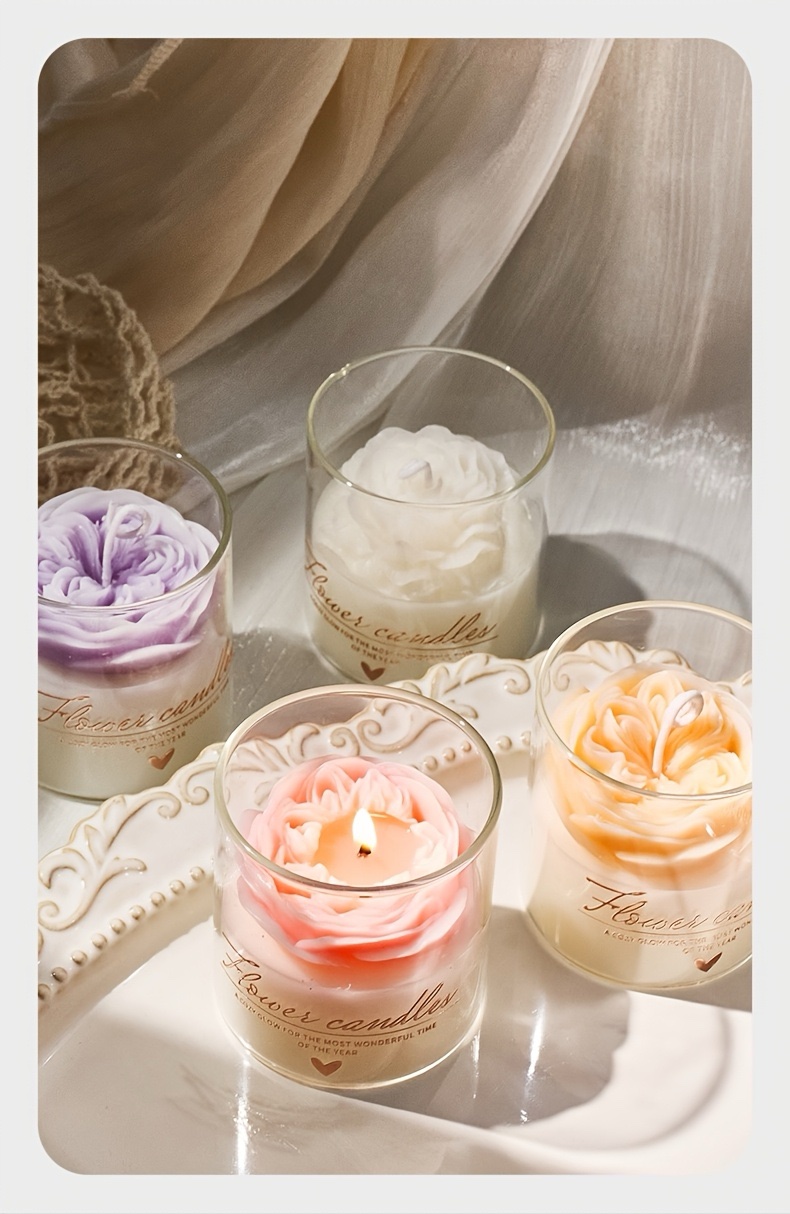 1 floral glass cup wax candle