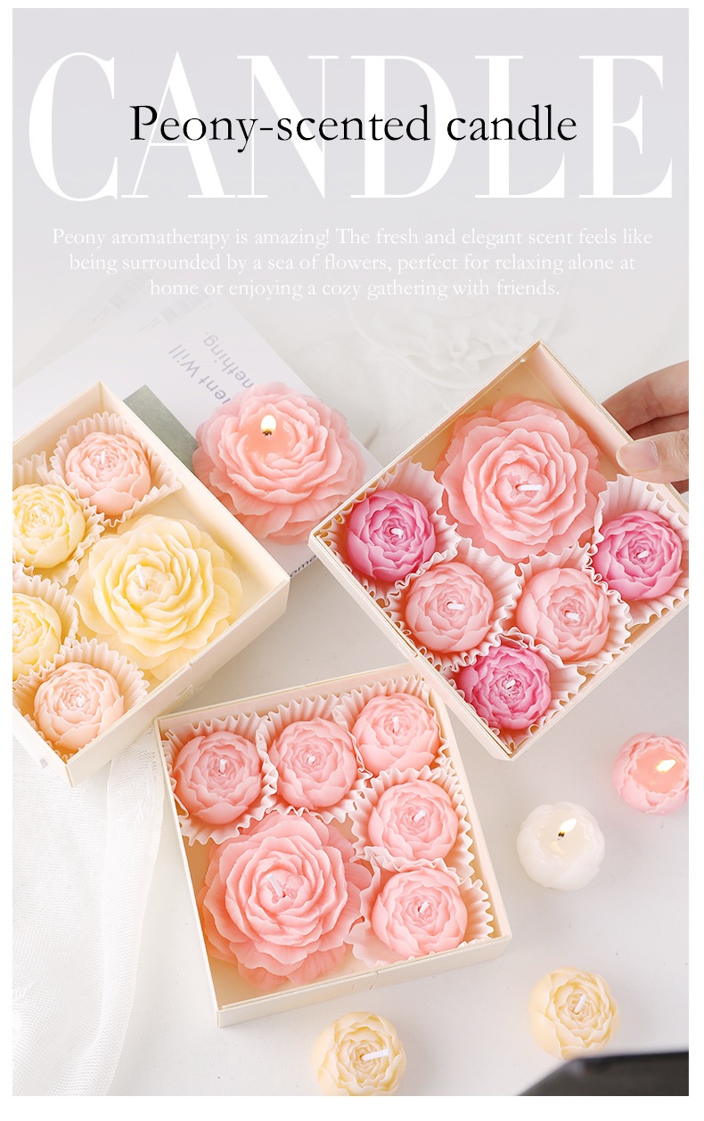 9 individually crafted rose-scented soy wax candles